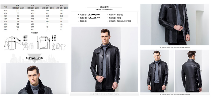 店鋪定位按照商品客單價可以細分為高客單價、中等客單價、低客單價。根據(jù)店鋪定位去做用戶心理分析,不同的店鋪定位詳情頁設計在色彩和風格上會大有不同。比如:高客單價男裝在詳情頁設計時選擇的顏色一般為中性色居多,像灰色、黑色、白色等,詳情頁可以設計的簡單一些,前三屏只需要海報圖、平鋪(正反面)展示、尺碼表和商品屬性就足夠了。